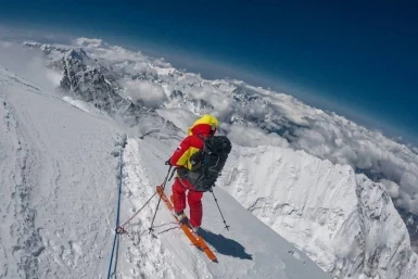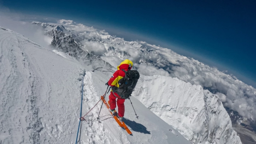 Спуск на лыжах с вершины Эвереста. из архива Виталия Лазо