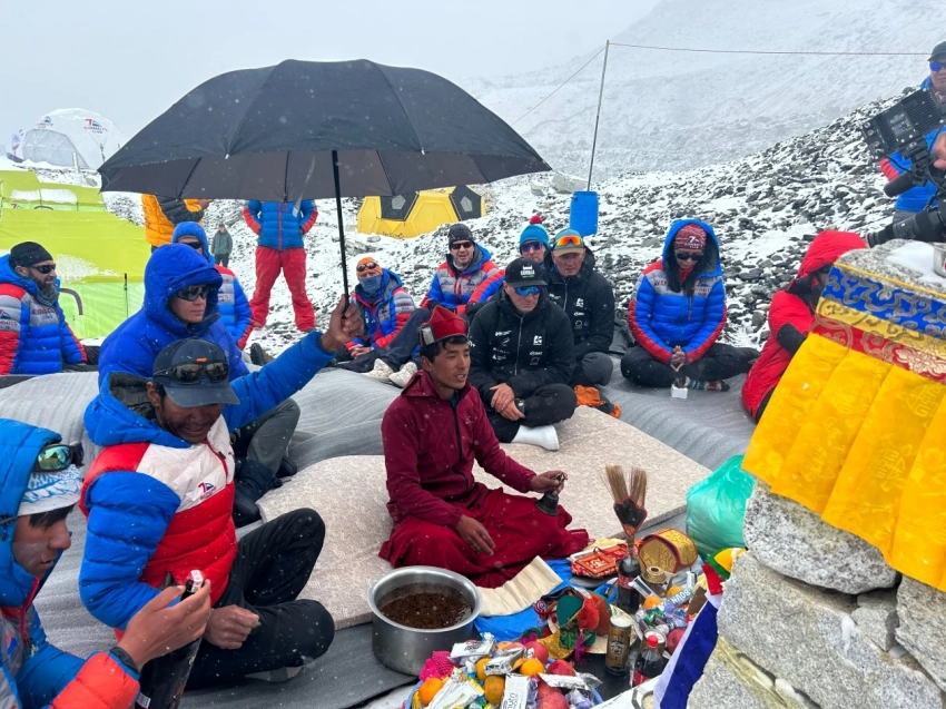 — Я особо не верю ни в какие приметы, но принял участие в обряде под названием пуджа. Его проводят перед выходом в сложное и опасное место и, конечно, перед восхождением. Во время церемонии буддийский монах читает молитвы, раздает и разбрасывает рис.