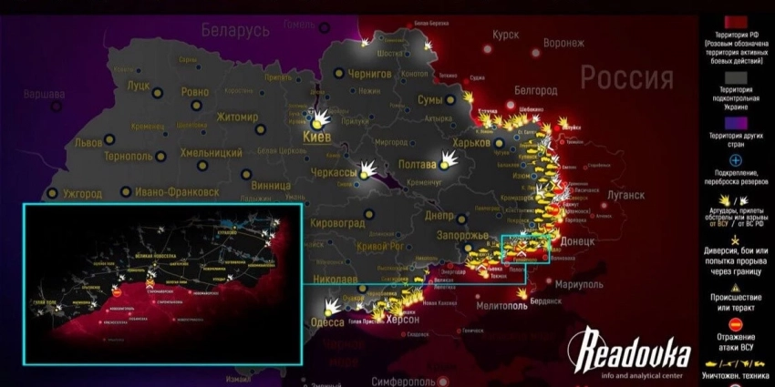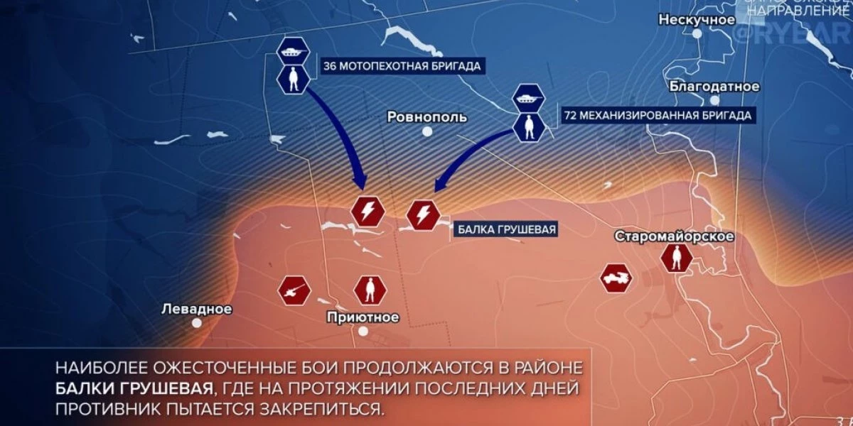 ВСУ продолжают атаковать в районе Работино, противник снова задействует западную бронетехнику. Тем временем российские бойцы отбили атаки украинских военных в районе Приютного и Старомайорского.