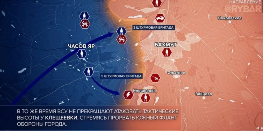 Карта боевых действий на Украине, обстановка к утру 12 июля 2023 г., Бои на Артёмовском направлении