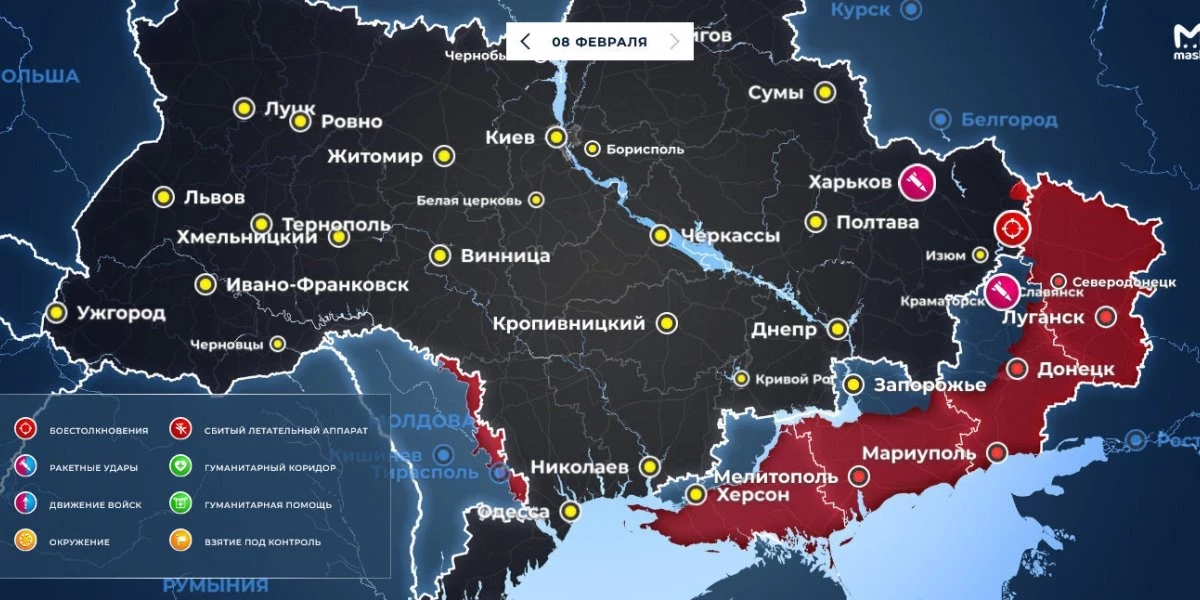 Обстановка на Донбассе и Украине на сегодняшний день, 9 февраля, карта боевых действий и продвижения войск РФ, последний брифинг Минобороны, свежие видео-сводки от Юрия Подоляки, Игоря Конашенкова и Михаила Онуфриенко — собрали актуальные новости по Украине.