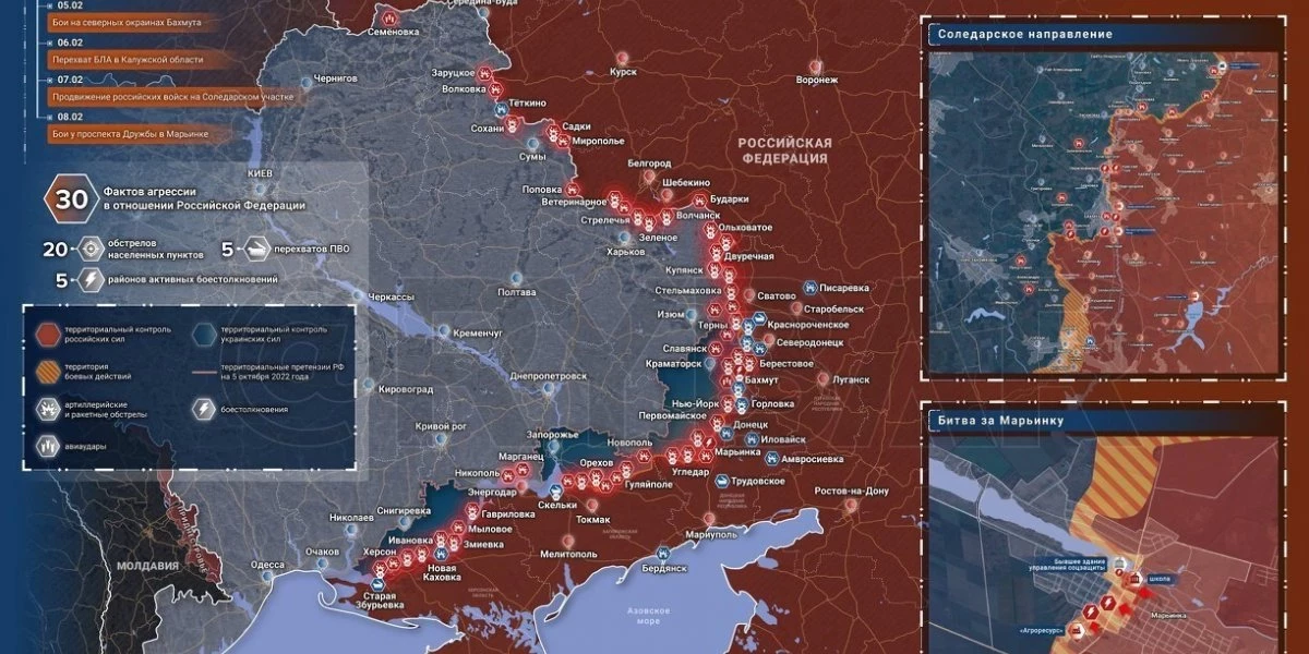 Спецоперация на Украине сегодня, 9 февраля: новая карта боевых действий, что происходит на Украине, ход, итоги. Битва за Марьинку