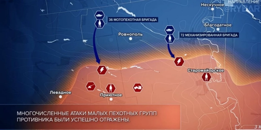 В Новоселовском наши бойцы закрепились вдоль железной дороги. Также идет зачистка недавно взятых лесополос к югу от села. Кроме того, российская армия продолжает успешно продвигаться в районе Торского и в лесах под Кременной.