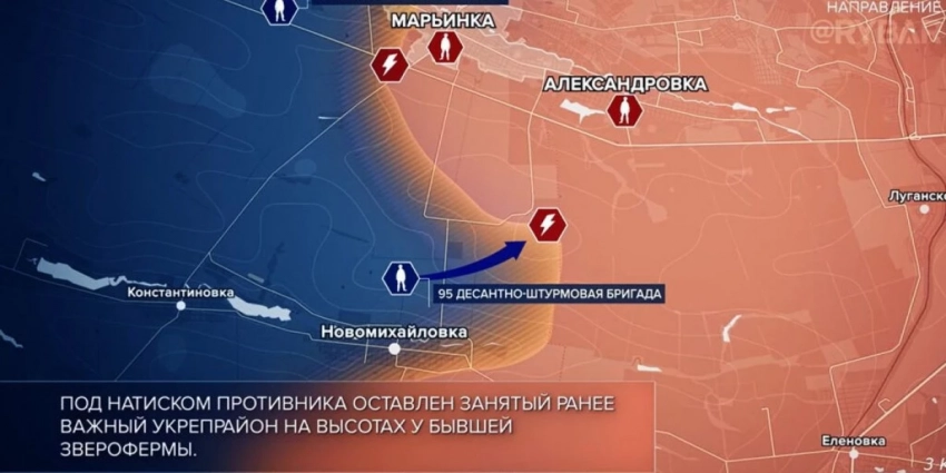Российская армия атаковала позиции врага в районе Новокалиново и на юго-западных подступах к Авдеевке. В Марьинке не прекращаются позиционные бои. Также наши пытаются продвинуться в направлении Новомихайловки.