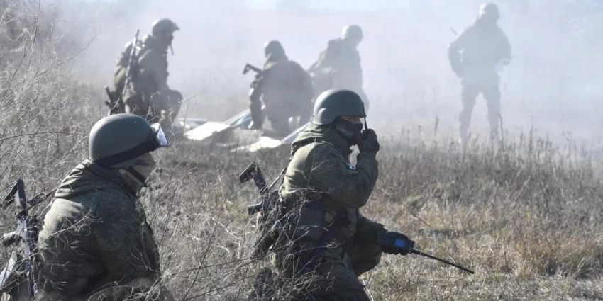 Штурмовые группы с боями продвигаются на север от г. Соледар. В данный момент в самом городе и в радиусе 7 км вокруг не осталось ни одного живого украинского боевика.