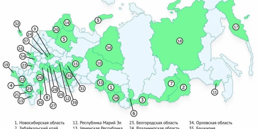 Всего в этот уже список входит 44 российских регионов.