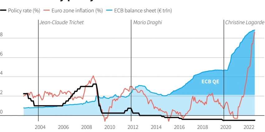 Итак, на этой неделе весь Евросоюз ждет заседания Совета управляющих ЕЦБ. Ожидается, что учетная ставка будет поднята на 0,25%, впервые с 2014 года. Отдельные смельчаки ждут повышения сразу на 0,5%, но на них тут же шикают по всем СМИ — дескать, не нагнетайте панику, народу и без того тошно.