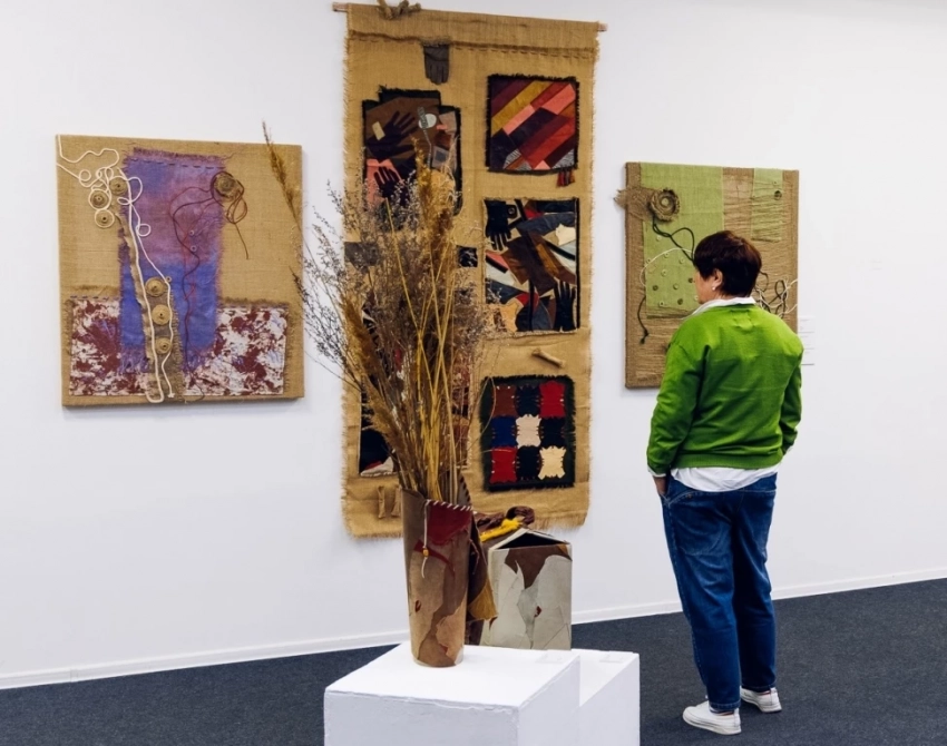 Читайте аннотации к выставкам. Читайте — много полезного почерпнете. Честно скажу, я, например, не знал, что техника, в которой работает Татьяна Погребняк, называется ассамбляж. Это когда из обыденных материалов, таких, как кожа или текстиль, создаются произведения искусств. Тем самым художница “выходит за рамки бытового мировосприятия, затрагивая вопросы метафизического”.