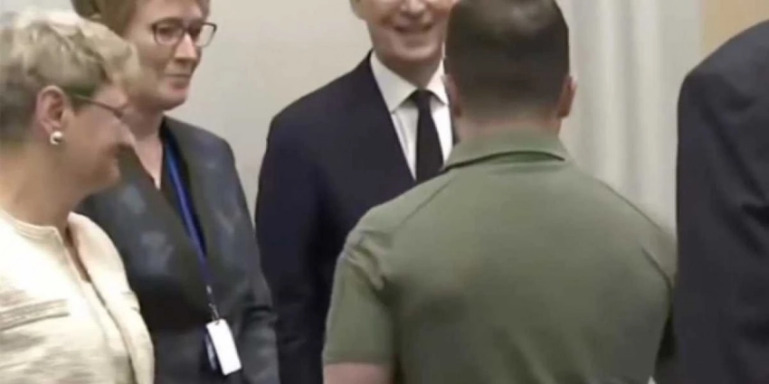 Момент попал в объективы телекамер. Кадры запечатлели, как Зеленский с улыбкой приветствует собравшихся и каждому жмет руку, но когда очередь доходит до Столтенберга, отмахивается. Тот в ответ улыбается.