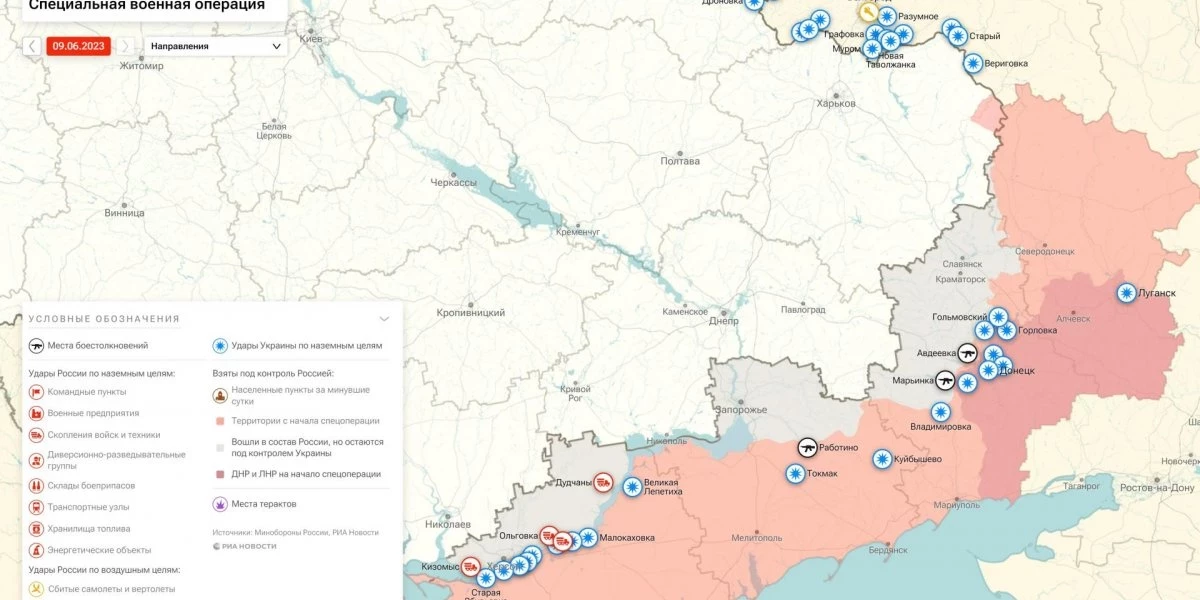 Хроника ударов и взаимных обстрелов в зоне спецоперации: данные на утро 9 июня 2023 года