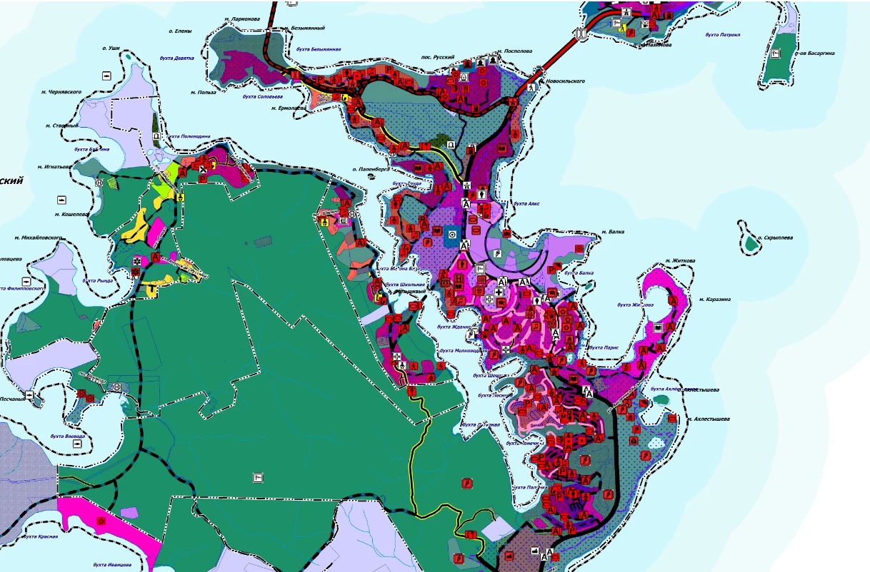 Новые изменения генплана и ПЗЗ Владивостока вынесли на общественное рассмотрение. Первое, что обращает на себя внимание — большое-количество зон общественно-деловой и смешанной застройки, допускающей строительство жилых домов, там, где сегодня расположены лесной массив, производственные и коммунально-складские зоны. Выделены новые территории под индивидуальные жилые дома. Остров Русский “перекроили” с учётом грандиозных планов развития. Какие-то объекты предлагается ликвидировать, а какие-то — перепрофилировать, как недостроенную психиатрическую лечебницу на улице Русской, сообщает ИА PrimaMedia.