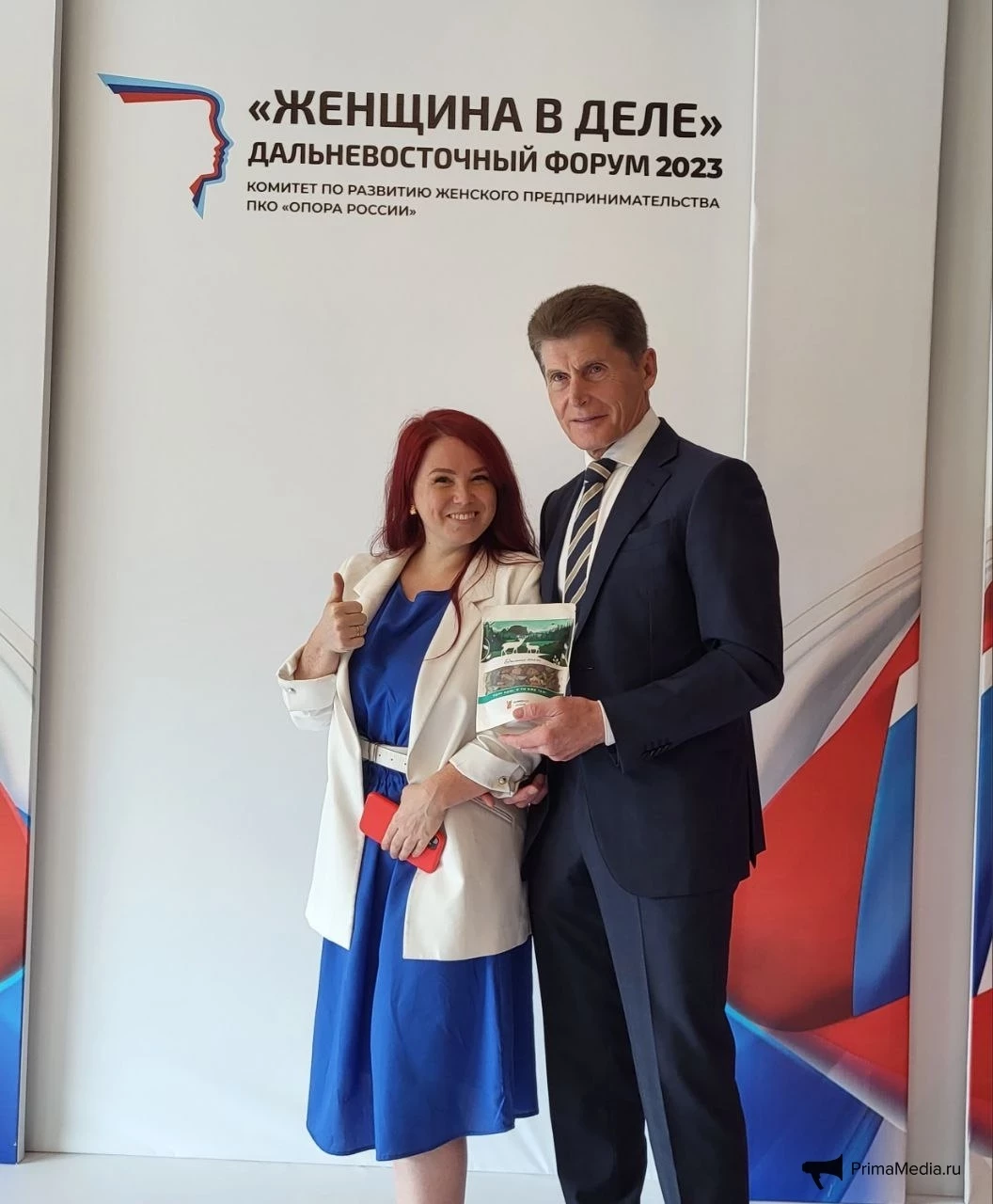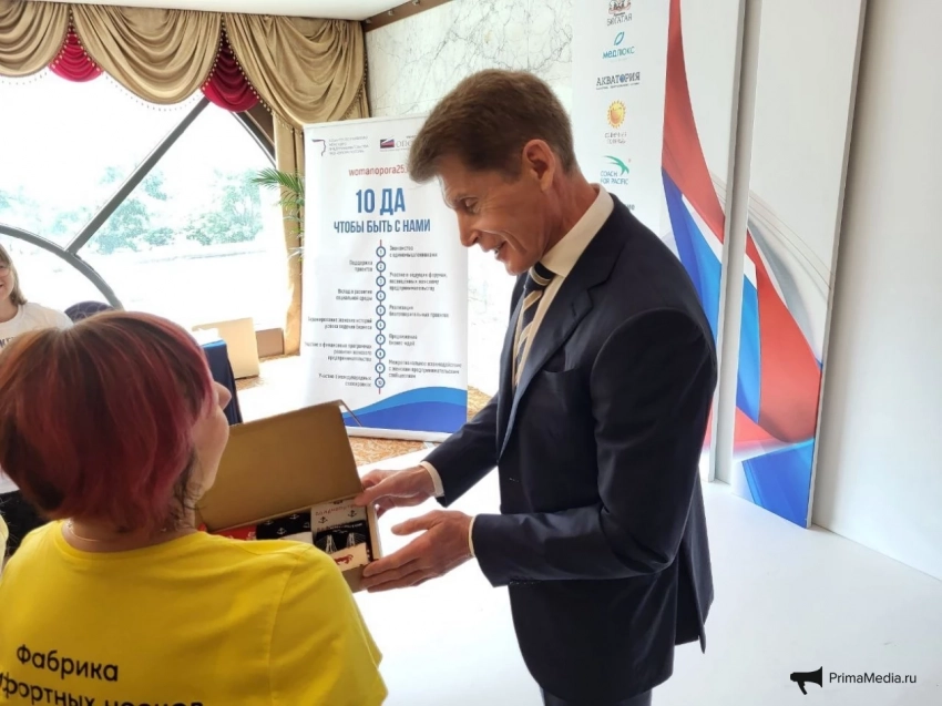 Под таким натиском невозможно было устоять. Губернатор в итоге все же сдался, маркетинг владивостокской фабрики очень убедительный. Да и, надо признать, идея для подарка отличная (как и все остальные, впрочем). Помощник главы оперативно принял презенты, и после серии фото с предпринимательницами и волонтерами Олег Кожемяко удалился с градоначальником. Наверное, их ждал разговор за чашкой “Таежного”. Во всяком случае, губернатор сказал, что пора идти чай заваривать.