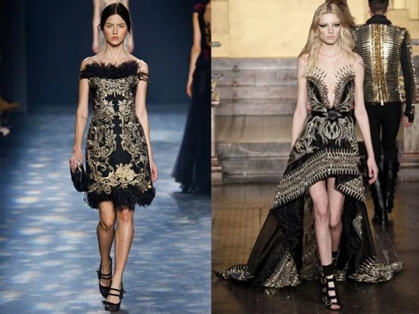 Соблазнительность образу придадут высокий разрез внизу, а также глубокие декольте спереди или на спине. Свой выбор можно остановить и на классическом платье средней длины, одного из вышеперечисленных цветов, которое подчеркнет фигуру и женственность. Образ дополнят неординарные аксессуары, например, сумочка или серебристые туфли с перьями на шпильке.