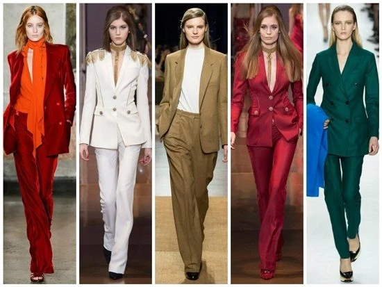 Обратите внимание на брючные костюмы свободного кроя, выполненные в светлых тонах или же в любом перечисленном ранее цвете.