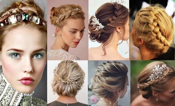 Что же касается праздничной прически, она не должна быть вычурной и статичной. Аккуратно убранные волосы можно украсить заколкой или ободком в виде цветов, усыпанными камнями. В косы можно вставить аккуратные цветы или вплести блестящие тонкие ленты, которые будут сочетаться по цвету и стилю с остальным образом.