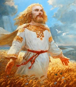 Поговаривали, что в одной руке бог держит колосья из золота и ему достаточно ими взмахнуть, чтобы нивы начали колоситься и хлеба взошли. Конь, что везет бога Ярилу тоже необыкновенный, там, где стукнет его копыто распускаются цветы и травы стелются пышным ковром.