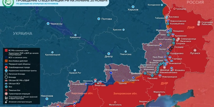 Реальная карта боевых действий на Украине на 21 ноября 2022: ситуация на сегодня, последние новости специальной военной операции на линии боёв