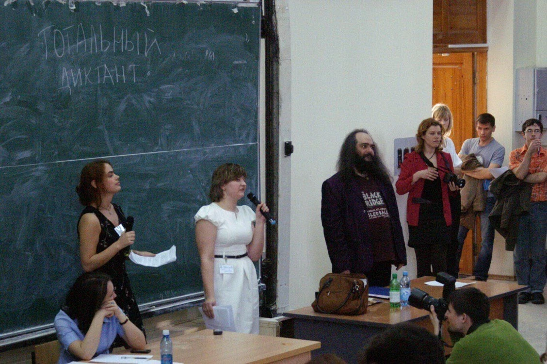 — Уже в 2010 году мы вышли за рамки университета, и в диктанте приняли участие различные учебные и культурные организации Новосибирска. С того же года мы стали использовать не отрывки из произведений классиков, а новые тексты, которые просили написать специально для “Тотального диктанта” известных авторов. Первым нашим автором стал Борис Стругацкий. С 2011 года диктант начал проходить по разным городам России. Еще через год стали присоединяться и участники из зарубежных стран. Затем мы организовали возможность писать диктант онлайн.