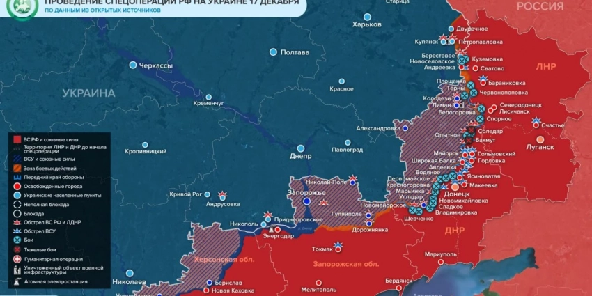 Главные новости » Эксклюзив » Новая карта боевых действий Украины 18.12.2022. Донбасс, ЛНР, ДНР сегодня 18 декабря 2022: последние новости. Спецоперация на Украине 298 день, итоги
