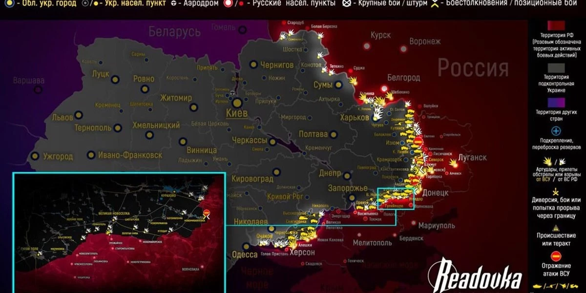 Карта боевых действий на Украине, к утру 17.07.2023 г.. Карта СВО от «readovka.news«.