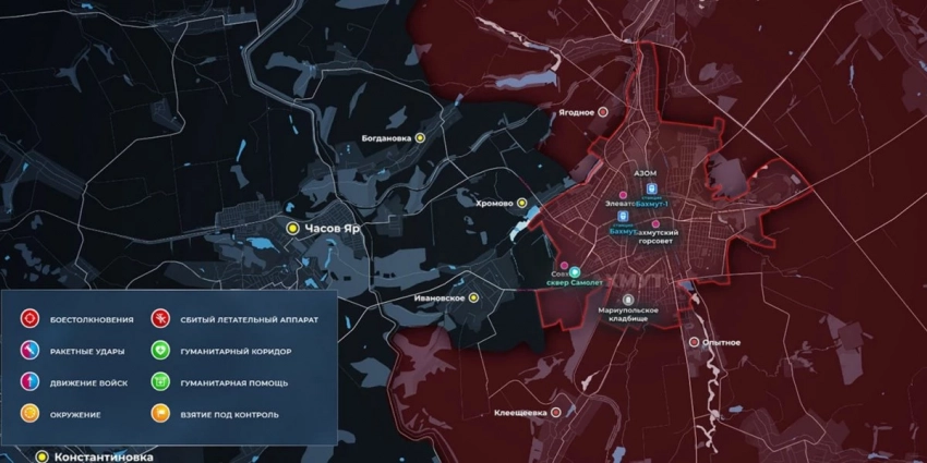 Карта боевых действий на Украине сегодня, обстановка к утру 17 июля 2023 года от Mash. Бои на Артёмовском направлении