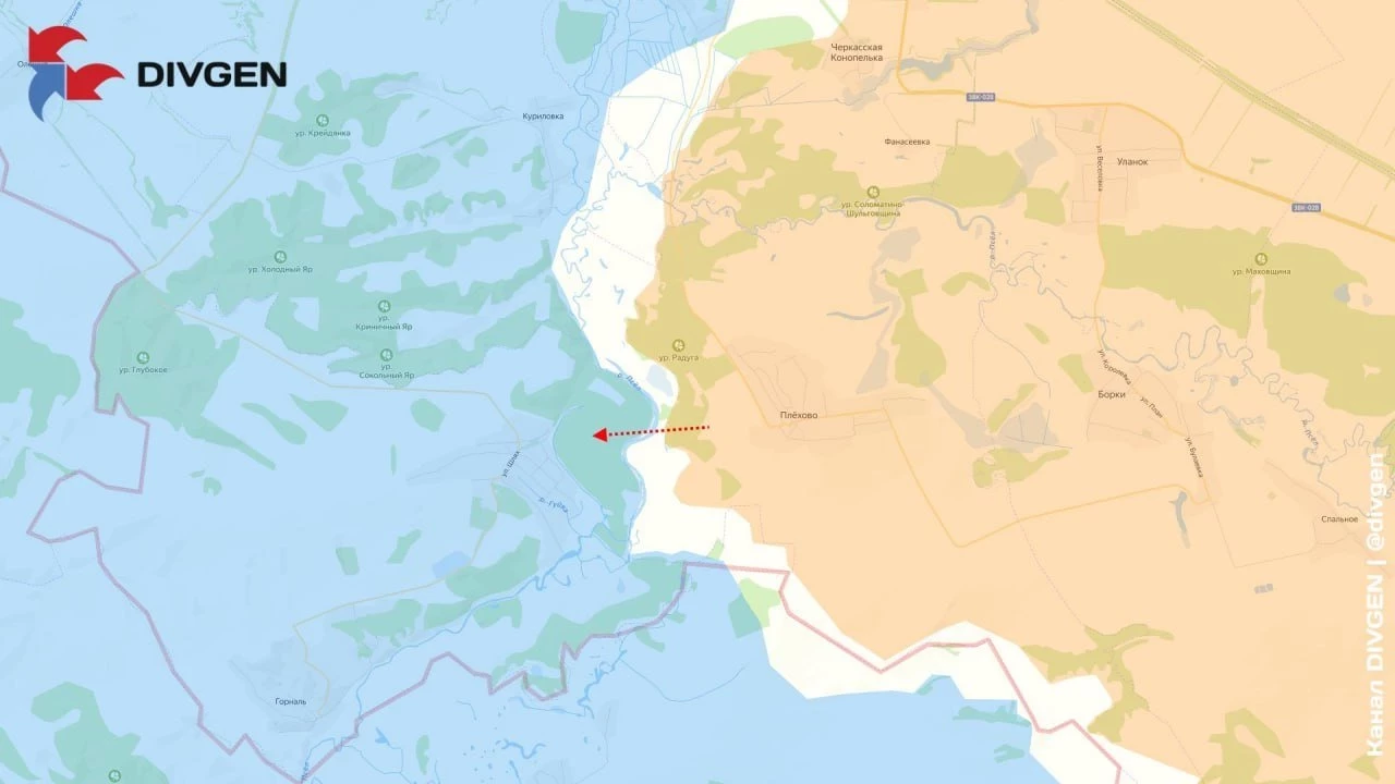 Российские войска продвигаются в сторону Гуево, стремясь перерезать один из важных логистических путей снабжения группировки ВСУ. Район Гуево сейчас тщательно обрабатывается нашей артиллерией и авиацией, по оперативным данным, войска готовятся форсировать реку.