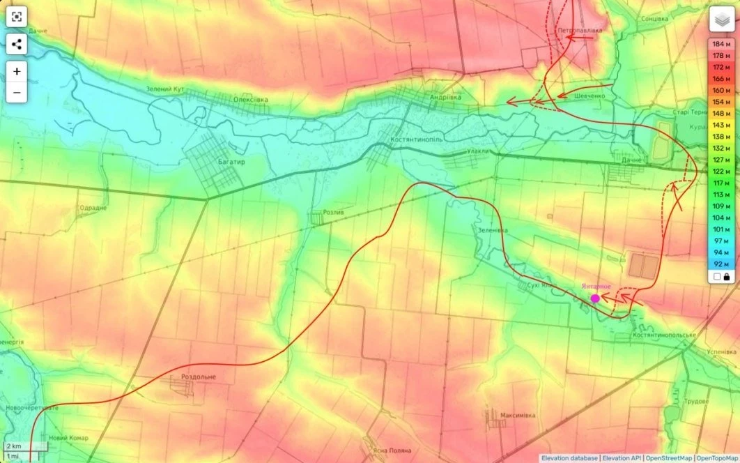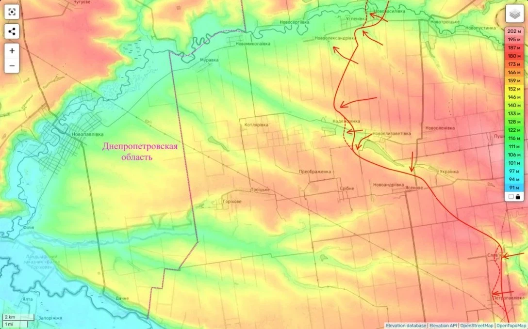 Противник оказывает ожесточенное сопротивление. Подкрепления, недавно переброшенные в этот сектор, сохраняют боеспособность и продолжают сдерживать наши атаки. К тому же, в данном районе враг активно использует укрепленные позиции последней линии обороны перед границей Днепропетровской области, что значительно упрощает для него выполнение оборонительных задач.