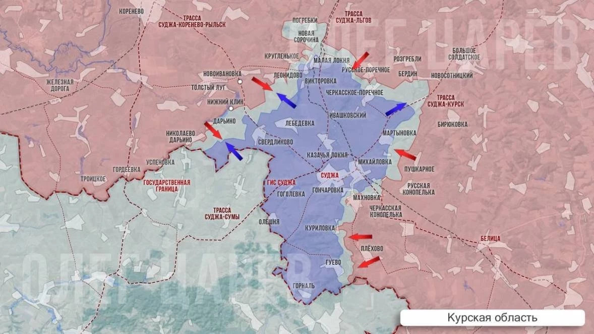 В свою очередь Telegram-канал "Военная хроника" опубликовал карту западного эксперта, обратив внимание, что пока все ждали наступления ВСУ, Северяне решили не ориентироваться на мнения военных экспертов и не прекращали активных действий, выбивая противника из опорных пунктов, в том числе на севере Суджанского района.