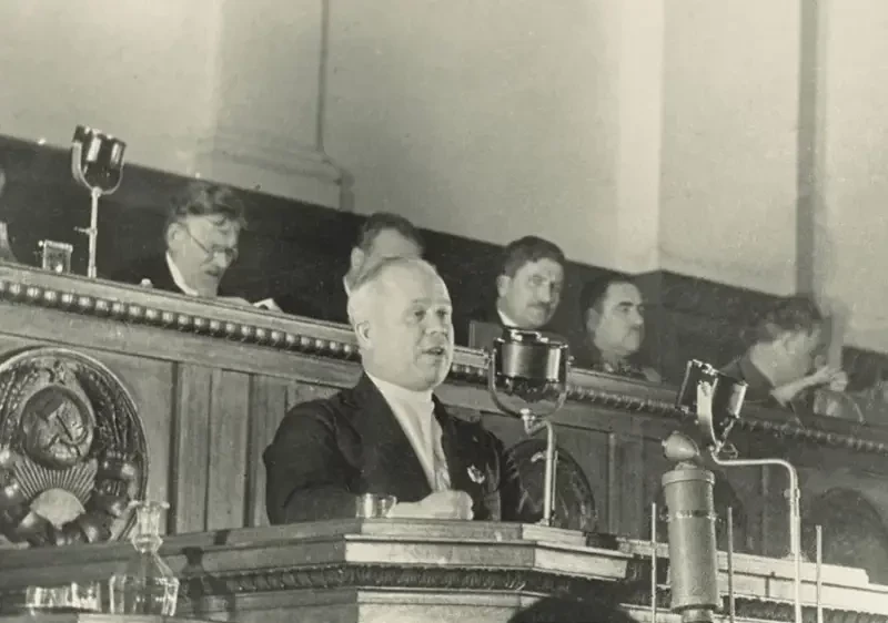 Н. С. Хрущёв выступает на чрезвычайном VIII Всесоюзном съезде Советов. 1936 г.
