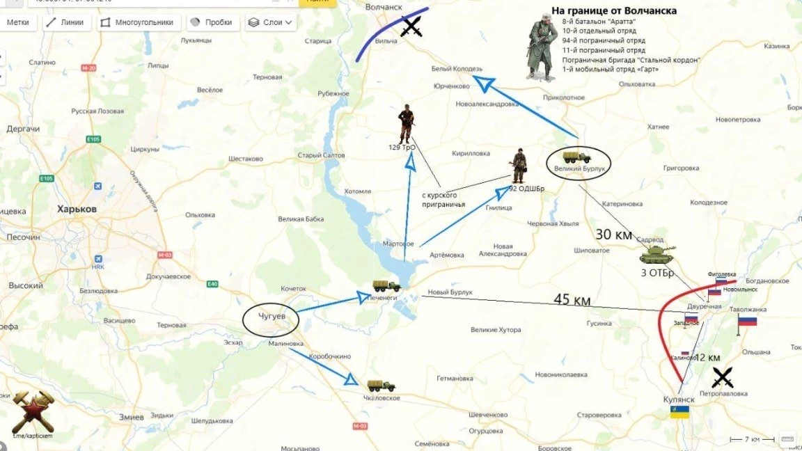 Если российские подразделения сомкнут фронт на линии Андреевка - Зеленое, группировка ВСУ окажется в полном окружении, лишившись возможности эвакуации тяжелой техники. Возможным вариантом развития событий может стать предоставление украинским войскам узкого коридора для выхода на запад, как это происходило ранее в Артемовске, Угледаре и Авдеевке. Однако отход будет сопряжен с серьезными трудностями: российская авиация и беспилотные комплексы нанесут удары по отступающим подразделениям. Основной маршрут отступления - через реку Волчья, которая уже находится под плотным огневым контролем российских войск.
