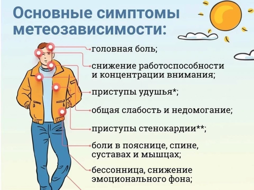 Некоторые медицинские источники отмечают, что во время значительной геомагнитной активности может увеличиваться вероятность резких изменений артериального давления и нарушения сердечного ритма. Врачи рекомендуют метеозависимым людям измерять давление дважды в день - утром и вечером.