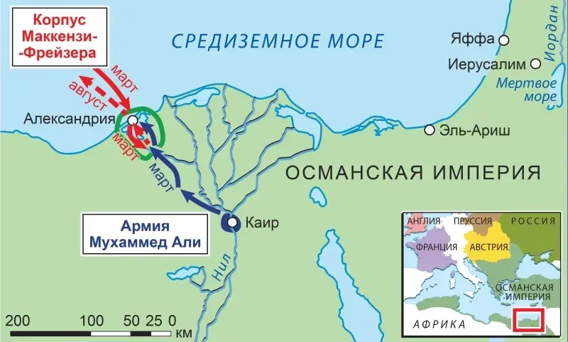 Это нападение вошло в историю под названием «Александрийская экспедиция 1807 года», также известная как «Экспедиция Маккензи-Фрейзера». Оно было совершено британскими войсками при поддержке британского флота в рамках Англо-турецкой войны 1807-1809 годов с целью захвата Александрии Египетской для обеспечения операционной базы против Османской империи в Средиземном море, закончившаяся неудачей с тяжелыми потерями.
