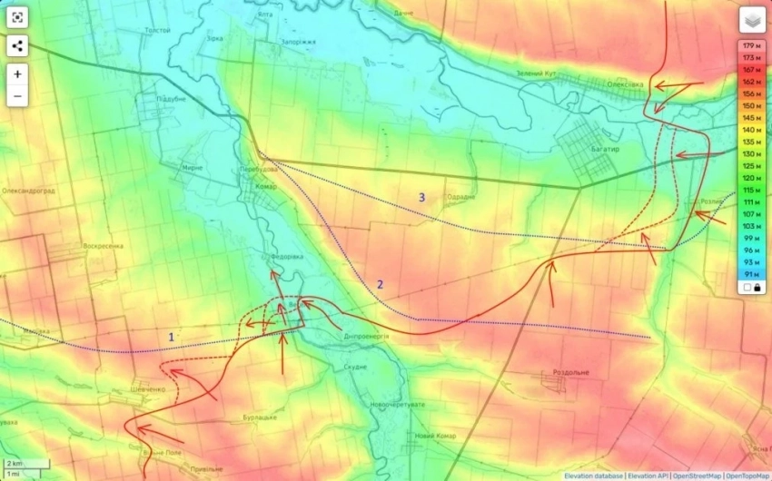 На Запорожском направлении российские части продолжают бои в Каменском и пытаются продолжать наступать севернее Малых Щербаков.