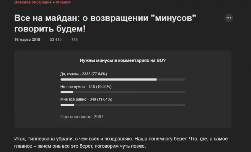 Нельзя не вспомнить такое явление, как «Заговор маршалов». Было жарко, когда появились первые читатели с маршальскими погонами, и еще жарче стало, когда маршалов стало много. И одни маршалы и генералы начали усиленно ставить «минусы» другим. Появлялись группировки, которые засыпали друг друга «минусами», так что человек мог лечь спать «полковником», а проснуться с «черными погонами» отрицательного рейтинга. И с ограничениями на написание комментариев, к тому же.