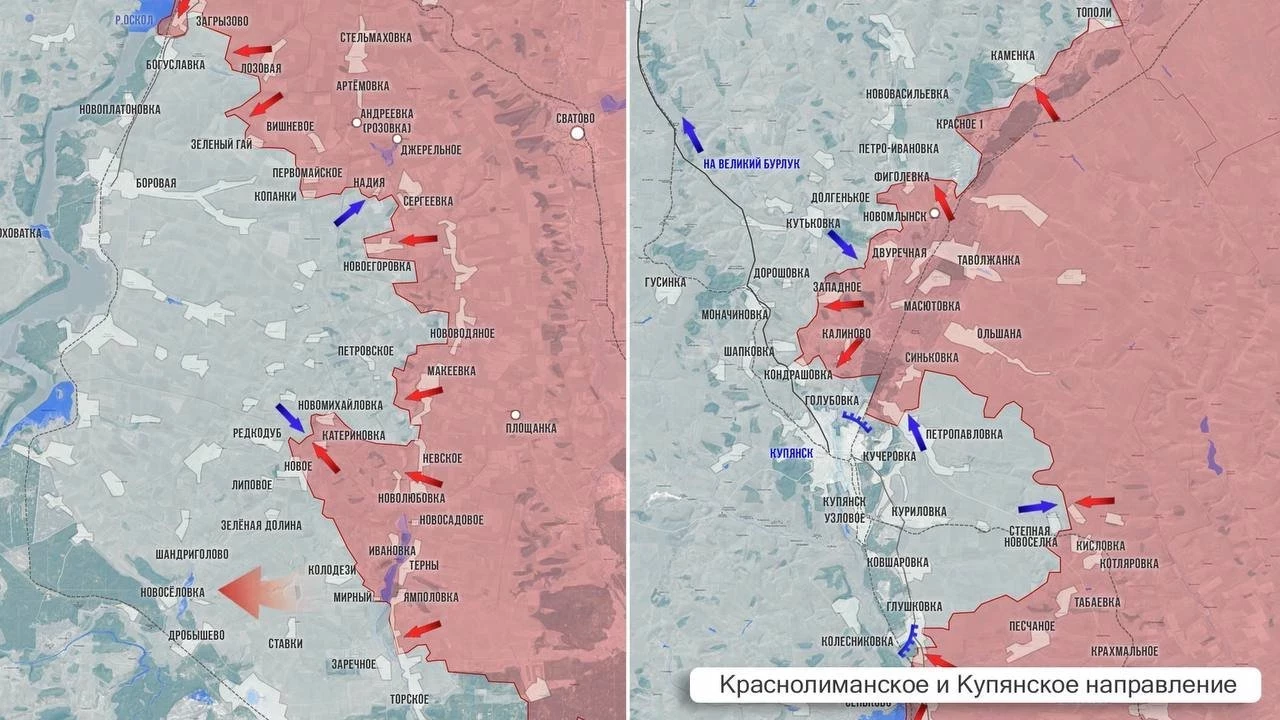 Краснолиманский фронт гремит. ВС РФ прорываются к северо-восточной части Торского, а вот атаки южной части села успеха пока не принесли. Между северной частью Торского и южной частью Ямполовки – серая зона: сообщают, что наши отошли из района рыбхоза. Идут бои на подступах к Колодезям и Зелёной Долине. Наши штурмуют Новое сразу с трёх сторон, и, обходя село с юга, направили часть сил к Липовому, а с севера ведут бои за Редкодуб, где ВСУ пока держат западную часть.