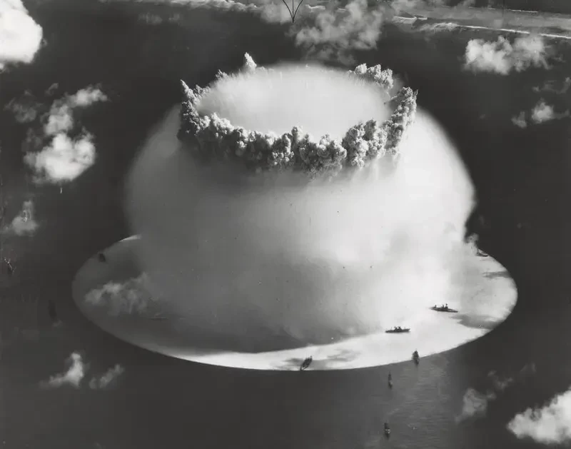 Позволю, конечно, как обычно, отправиться в историю и вспомнить, как в июле 1946 года американское военное ведомство взорвало два атомных заряда на атолле Бикини: воздушный «Эйбл» и подводный «Бейкер», мощностью 23 килотонны каждый. То есть – 23 000 тонн тротила.