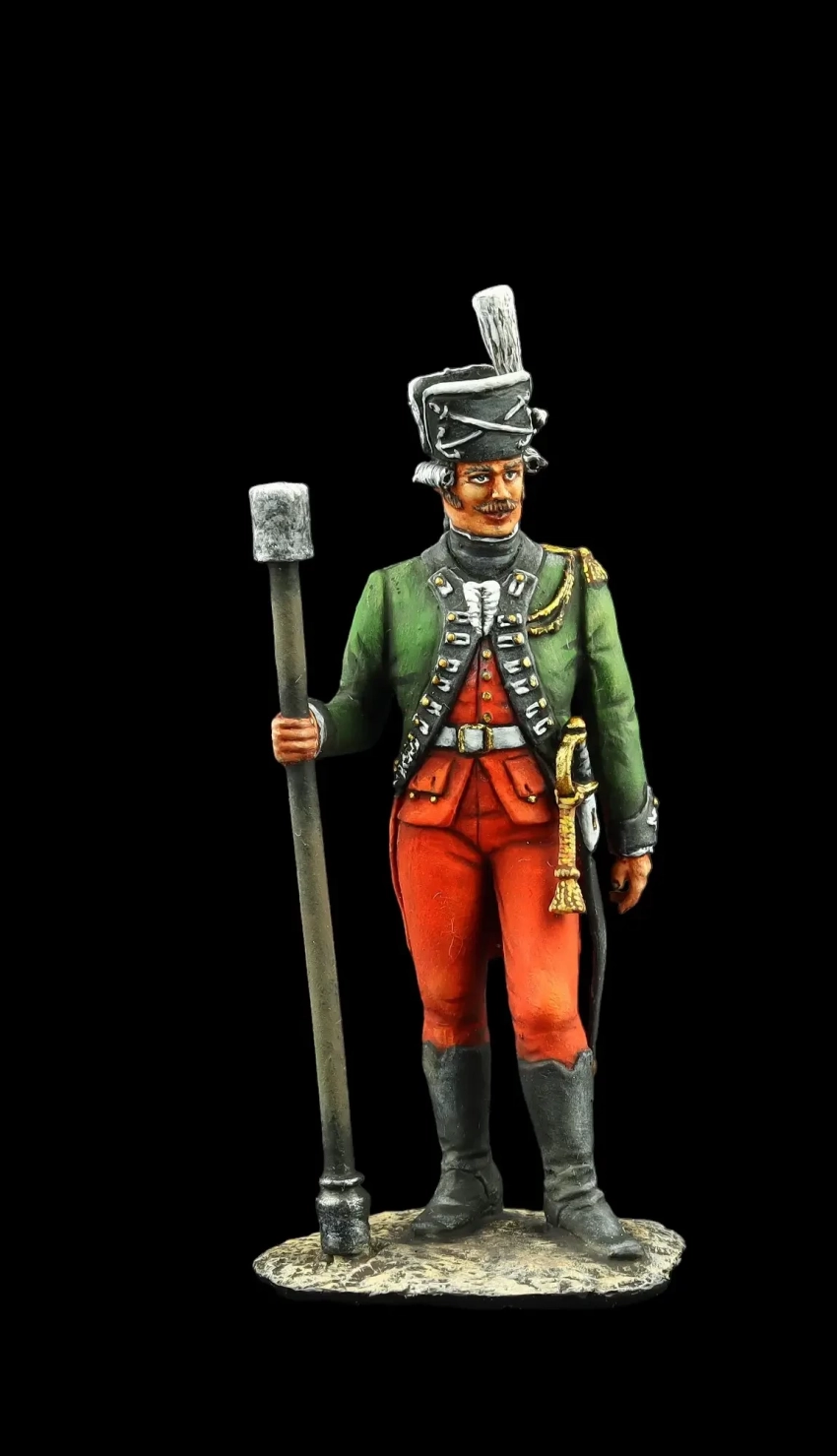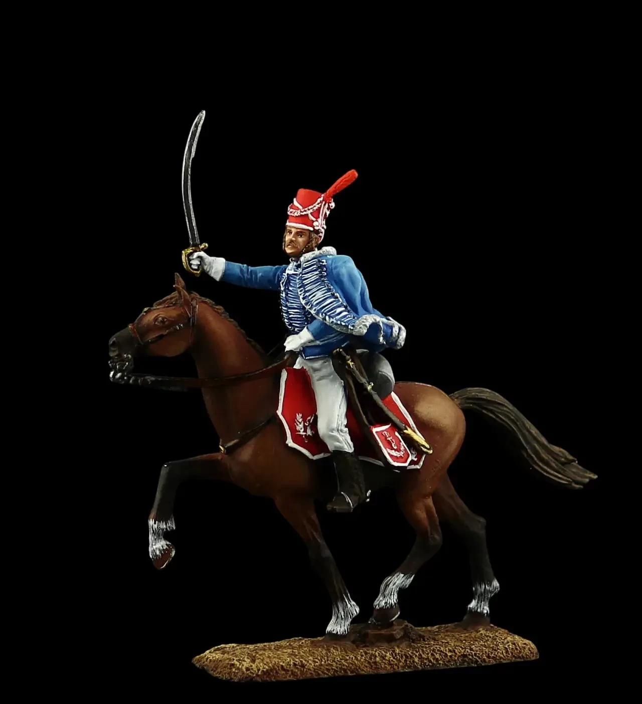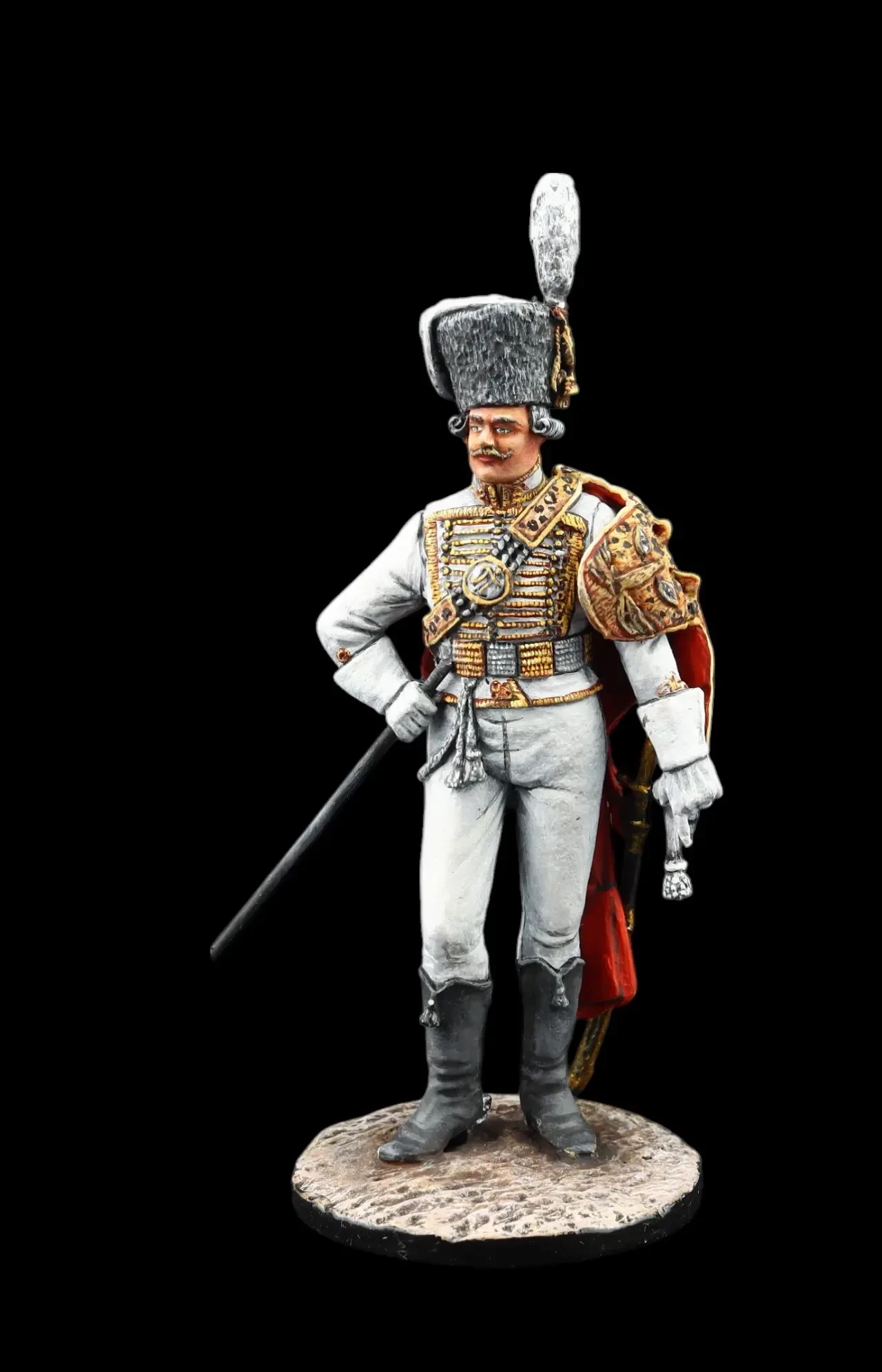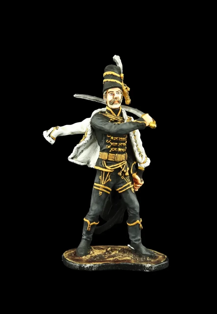Обер-офицер Лейб-гусарского полка 1799 г. с роскошной барсовой шкурой через плечо. Производители: «Silver Dream Studio» и «Оловянный парад»