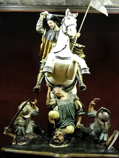И, согласно преданиям, во время Реконкисты Святой Иаков, как всадник на белом коне, 40 раз приходил на помощь христианам.
