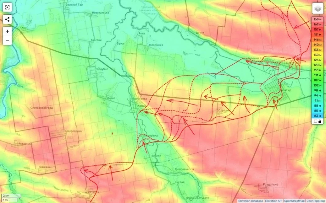 В то же время наступление продолжается и с других направлений: с юго-запада по трассе Н20 со стороны Новооленовки, с юга от Романовки и с юго-востока по трассе Т0516 со стороны Дзержинска (ранее Торецка).