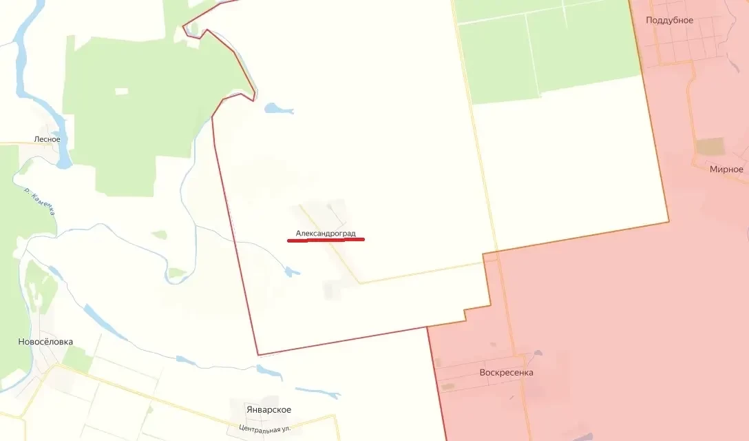 Противник подтверждает, что российские войска подошли к населенному пункту Александроград в западной части ДНР. После освобождения Новохатского ВС РФ продвигаются от Вольного Поля к Камышевахе и от Поддубного к Александрограду и Искре. К Александрограду наши войска подошли одновременно с юга и с востока, что может привести к изоляции украинского гарнизона этого населенного пункта. Таким образом, успешные действия на юге ДНР создают давление на ВСУ у границы с Днепропетровской областью.