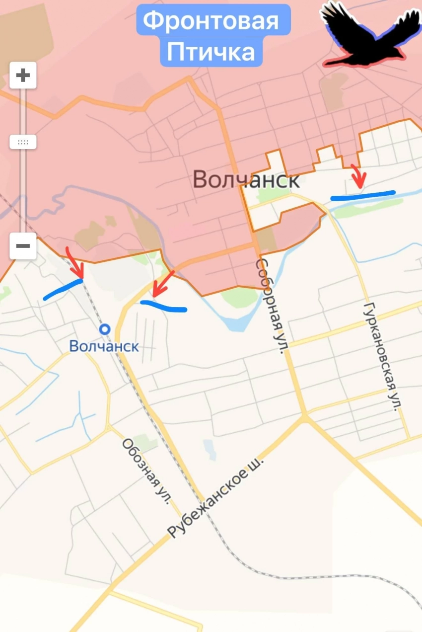 На Великобурлукском участке фронта в ходе ожесточенных боёв нашим подразделениям удалось сломить упорное сопротивление противника и продвинуться в лесопосадках в окрестностях с. Меловое. После освобождения Дегтярного наши войска зачистили карман и северо-восточнее населённого пункта. Наши войска продолжают наступление в Волчанске и его окрестностях. За сутки зачищено 12 домов. В лесных массивах в ходе ожесточенных боёв продвинулись в прилегающих к городу лесопосадках.