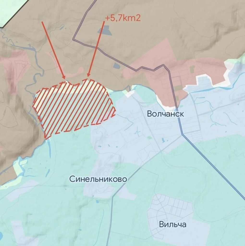 На Харьковском фронте ВС РФ на 1,5 продвинулись в Волчанске: расширили зону контроля в западной части города и заняли северную часть Татарского леса. Есть успехи и в районе Волчанских хуторов. Наступая в районе Мелового, ВС РФ вынуждают ВСУ перекидывать на этот участок резервы, в частности с Купянского участка.