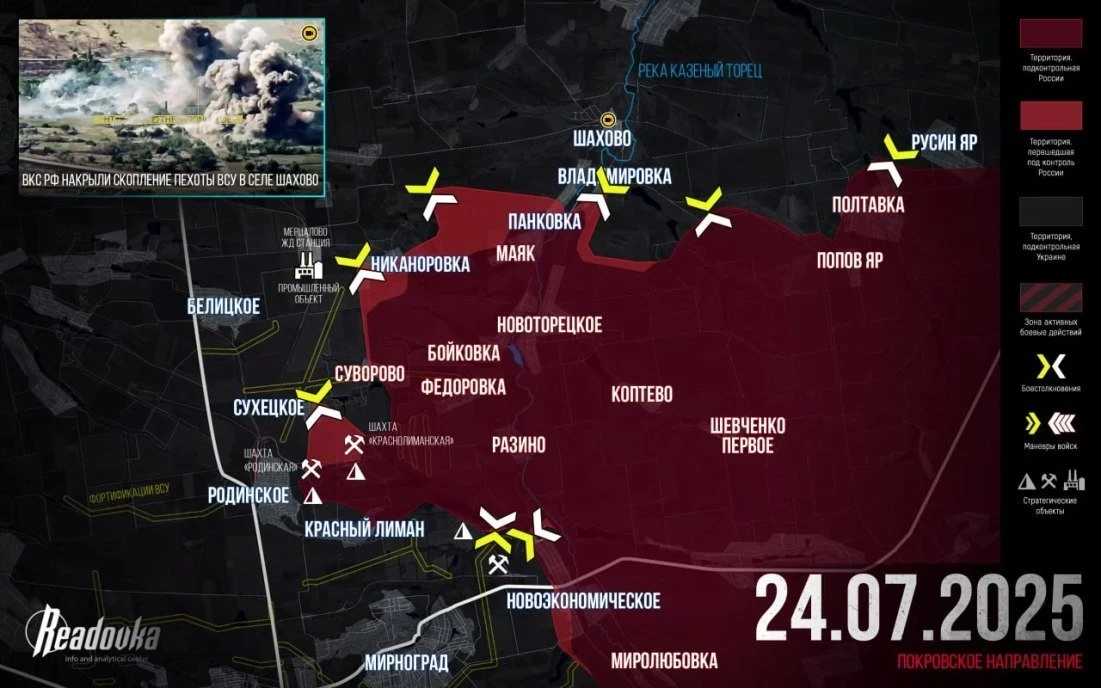 Новая карта боевых действий в зоне СВО на Украине на 25.07.2025