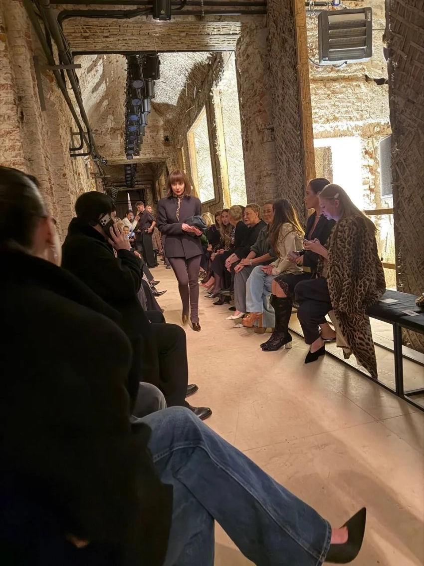 Среди гостей — представители светской и модной Москвы: Ксения Соловьева, Светлана Бондарчук, Оксана Бондаренко, Наталья Суркова, Марианна Сардарова, Александра Вертинская, Дина Хабирова, Альбина Назимова, Александр Рогов, похудевшая Ксения Собчак в архивном образе Терехова, Полина Подплетённая, инфлюенсер Дина Цай, а также глава Газпромбанка Андрей Акимов с супругой Дарьей, участвовавшей в показе, архитекторы Козин и Руэда, оформившие бутик бренда во «Временах года». За рассадкой в первом и единственном ряду отвечал Михаил Друян.