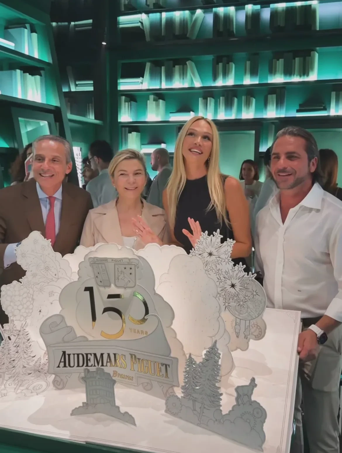 Фото Виктории ЛопырёвойНа следующий день Виктория в повседневном образе — чёрном топе, леопардовых брюках и туфлях Prada — отправилась в Dubai Mall, где проходит выставка брендов часов Dubai Watch Week. Там модель сделала фото с гостями, амбассадорами и представителями марок, а также поздравила со 150-летием известный швейцарский бренд часов Audemars Piguet.