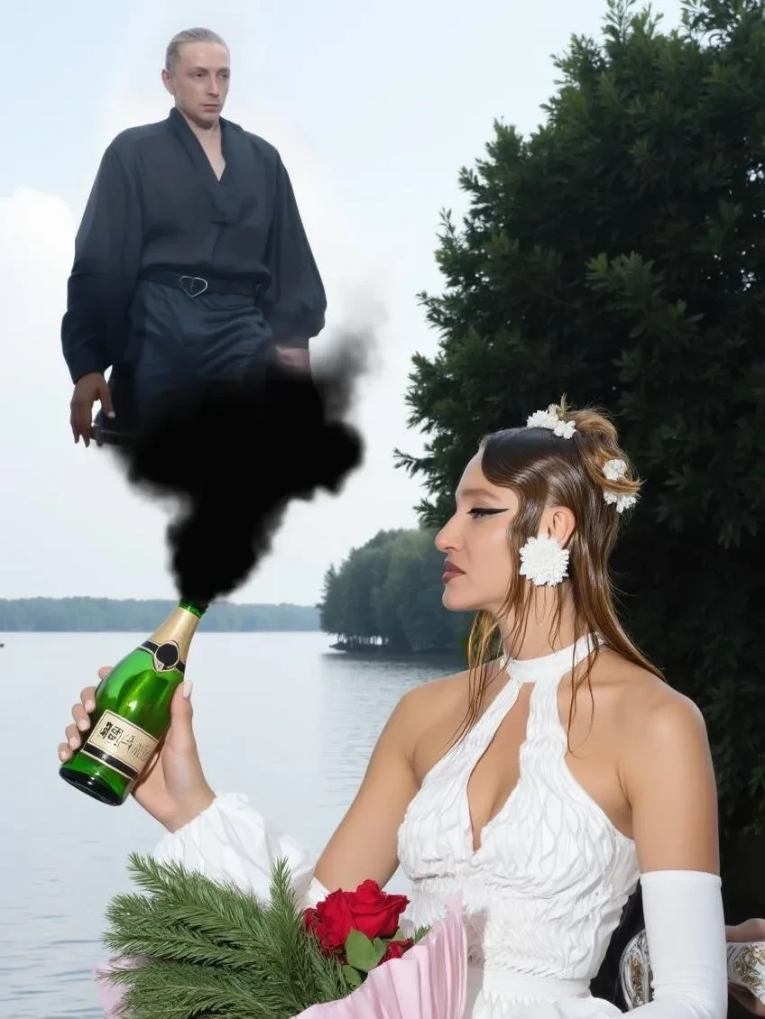 На ранее не опубликованных сюрреалистичных снимках пара позирует в парке в объективе фотографа Жени Филатовой. Миногарова примерила два наряда от дизайнера Александра Арутюнова, а Горчилин надел серый костюм и чёрную рубашку с брюками.