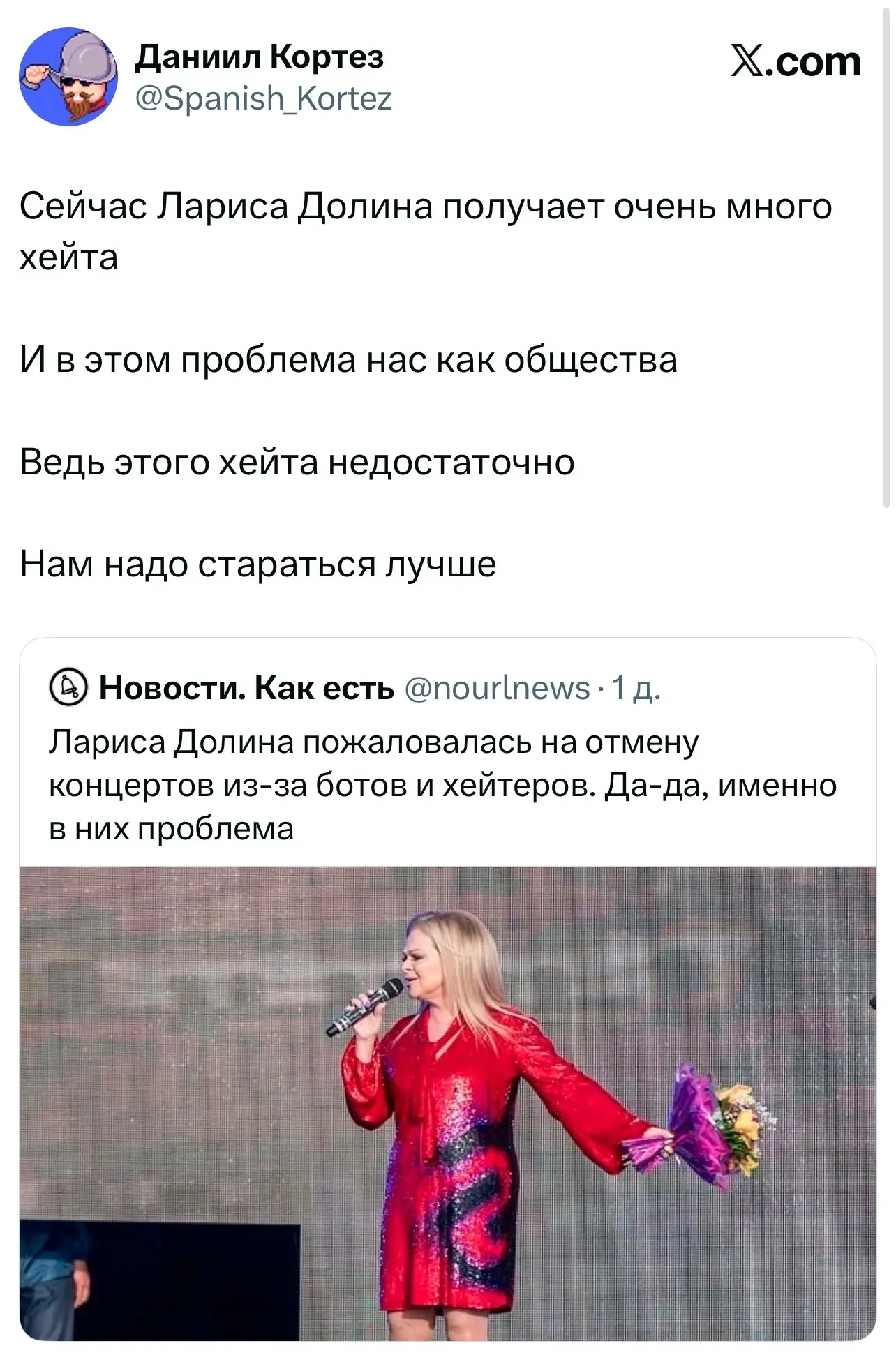 https://t.me/spletnik2006/44750Мем про Ларису ДолинуМем про Ларису ДолинуМем про Ларису Долину