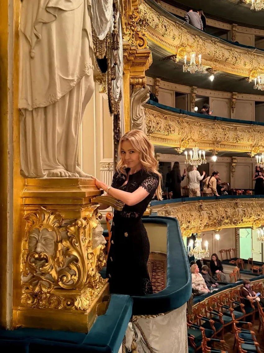 Яна РудковскаяЯна РудковскаяЯна РудковскаяЯна РудковскаяТем временем 51-летняя Виктория Шелягова опубликовала фото из Большого театра, куда она тоже пришла в образе total-black. Супруга бизнесмена Олега Шелягова позировала на фоне сцены главного московского театра в облегающем платье You Wanna и меховой шапке. На спектакль Шелягова отправилась прямиком из села Холуй, где провела выходные. "Люблю контрасты в жизни. Из Холуя прямиком с дороги в Большой театр", — написала она.