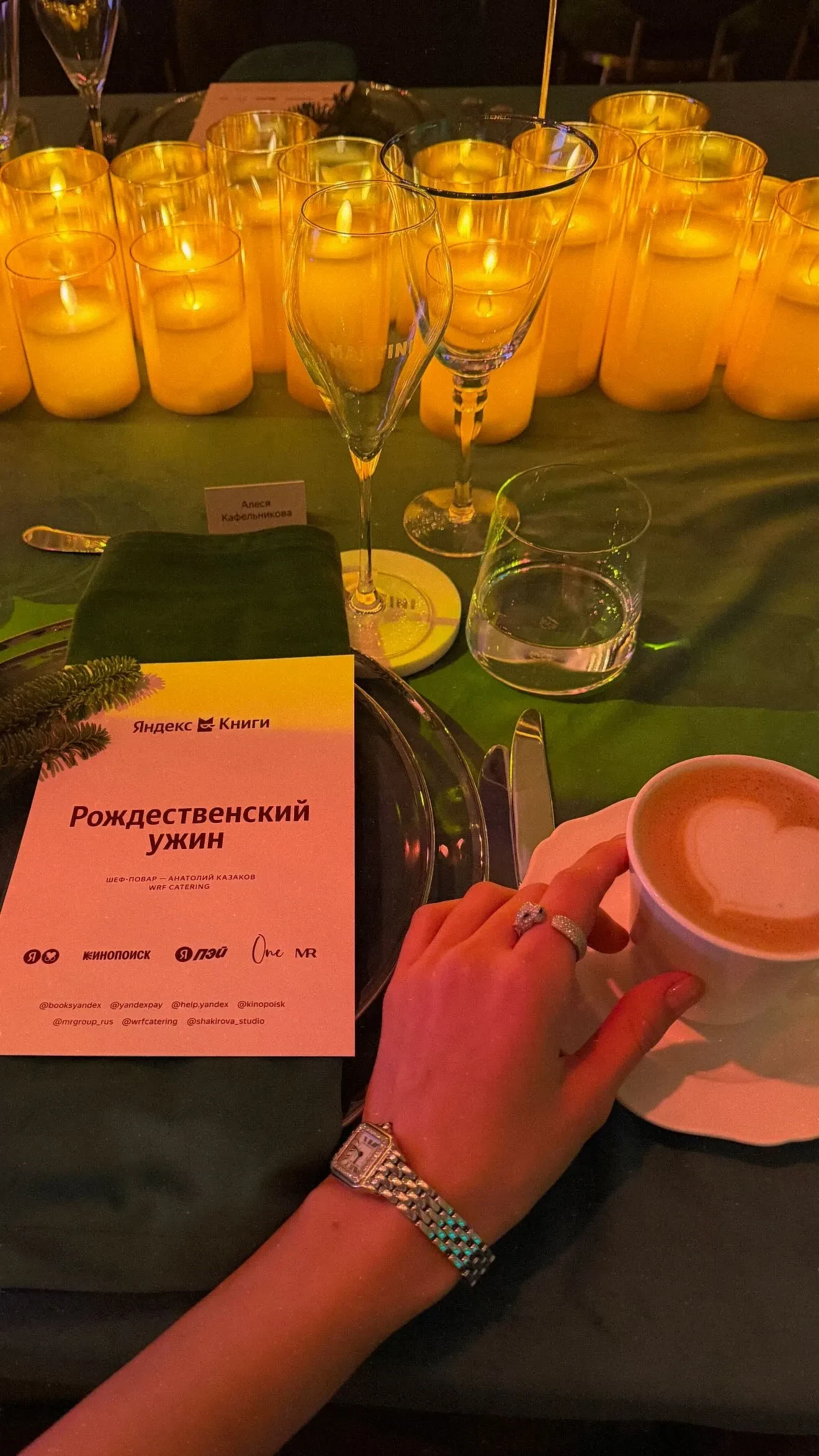 Алеся Кафельникова посетила рождественский ужин сервиса "Яндекс Книги". 27-летняя модель пришла на мероприятие с обнажённым животом в меховом топе от Александра Терехова и в брюках на низкой посадке. Образ дополнили "зимний" макияж, часы и кольцо Cartier с бриллиантами.