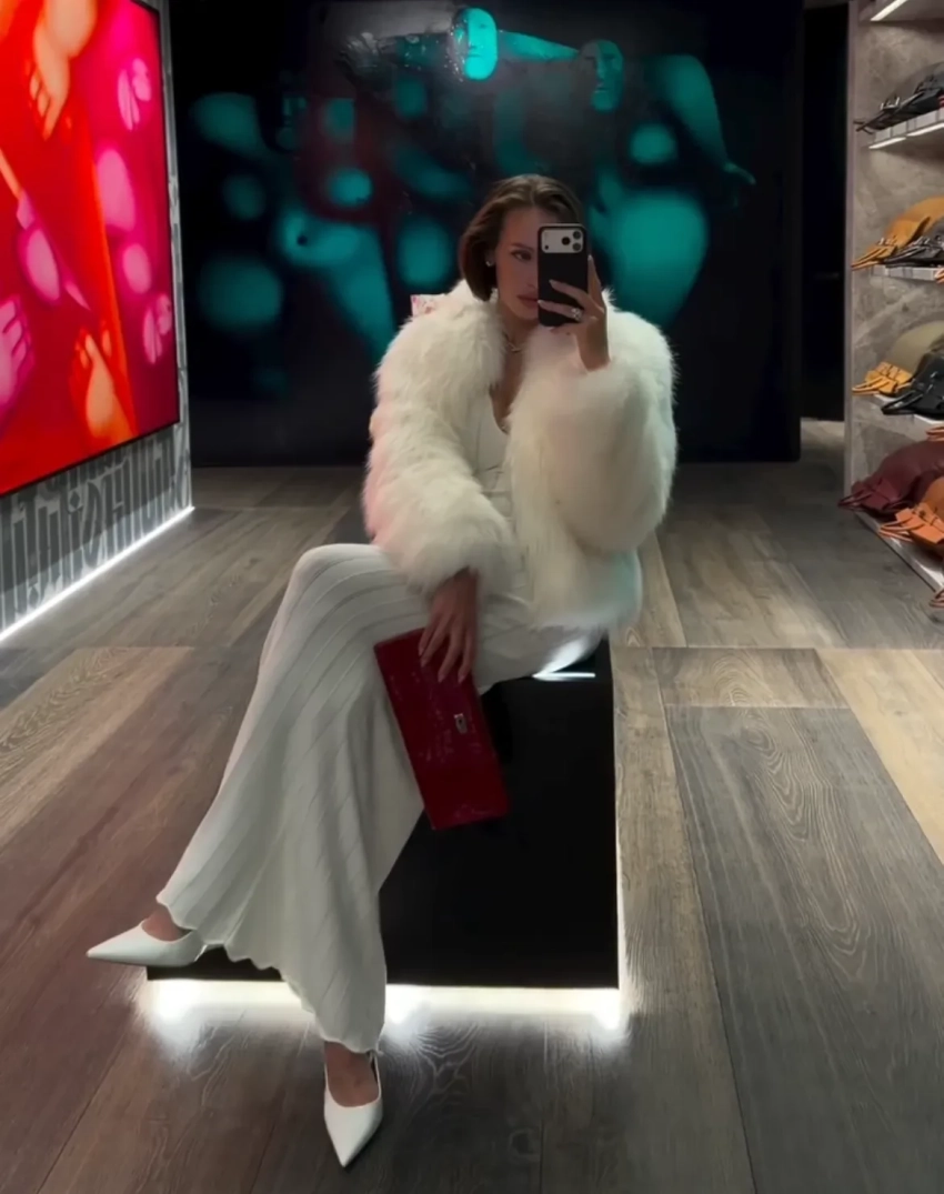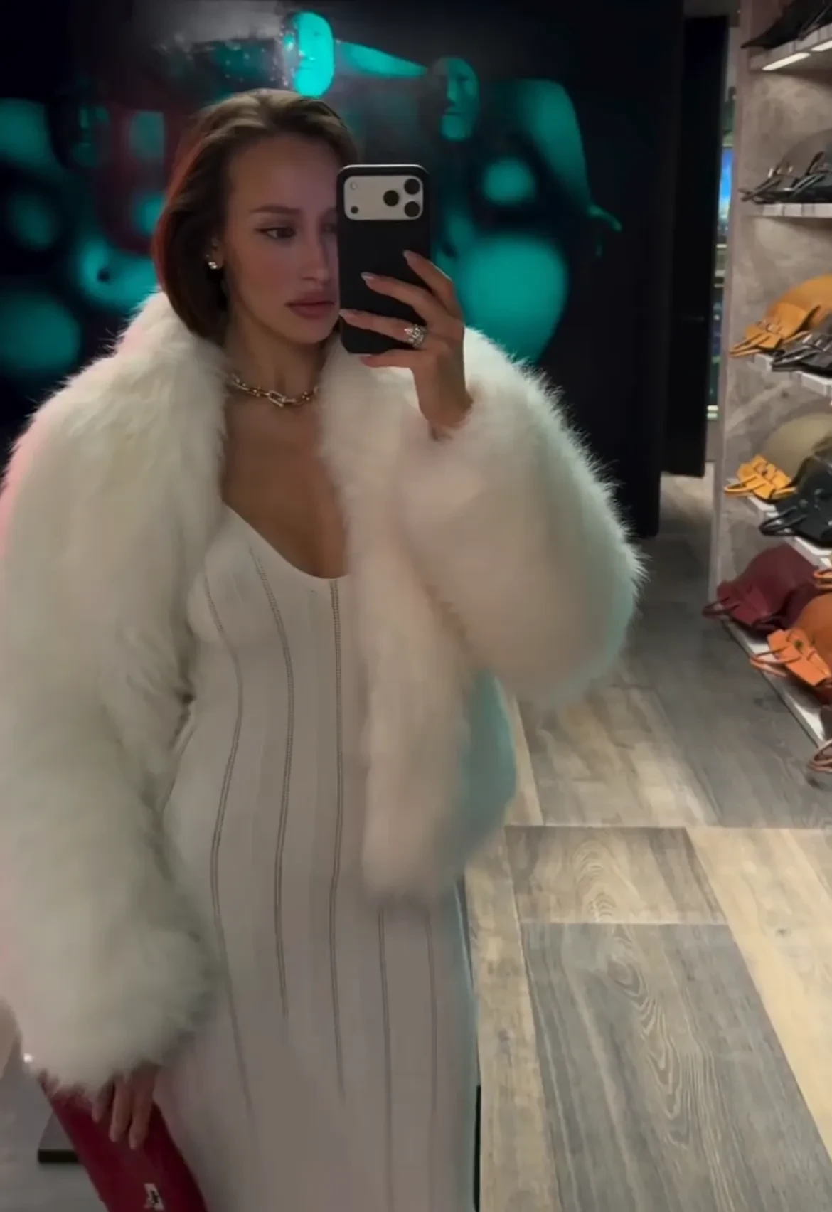 На мероприятии 32-летняя Иванова, которая этим летом родила от него дочь, появилась в облегающем фигуру белом платье в пол и шубе в тон. Образ дополнили массивные ювелирные украшения и красный клатч. Среди других звёзд на вечеринке была певица Нюша, которая исполнила со сцены несколько своих хитов.